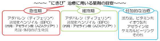 基本となる薬剤を用いて、様々な“にきび”に合った治療方法を継続して行っていく必要があるといえるでしょう。